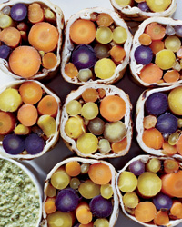 About 15 slender baby carrots—grilled until charred, then tightly rolled inside a tortilla with poblano-spiked sour cream—make for a superb vegetable wrap.