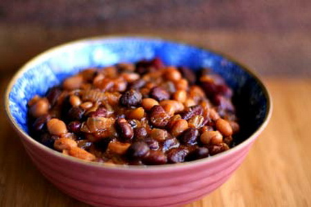 Baked beans are just the thing for a blustery day. My father pulled this recipe out of Bon Appétit magazine years ago and we've been enjoying its tangy, rich flavor ever since. A great side dish to pork or steak.