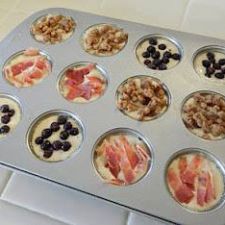 Spray muffin tins with cooking spray and scoop batter using a large ice cream scoop. Bake for 20 to 25 minutes, or until they just start to turn a bit golden at the edges.