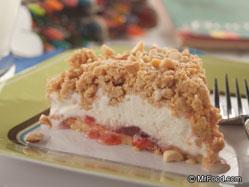 Spoon half strawberry topping on crust and spread with softened ice cream. Spoon remaining strawberry topping over ice cream and sprinkle with remaining crumb mixture, pressing down lightly. Top with chopped peanuts.