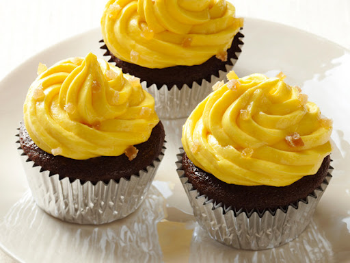 Frost the top of each cupcake liberally with the mango buttercream and garnish with the candied ginger.