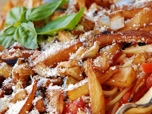 - 2 eggplants, cubed