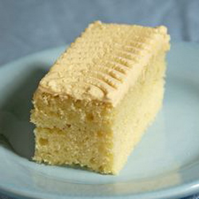 This is an excellent recipe. It's easy and quick to put together - and the results are fantastic. The cake is delicious and has enough texture to stand up to the lunch box. I know the frosting is more firm than a 'real' Krimpet - but it tastes good and handles transport. The second time I made it was for a friend. I was distracted and melted ALL the butter for the frosting, and with extended beating, it turned out pretty OK - took the cake in one piece, and they were delighted. It also does freeze extremely well.