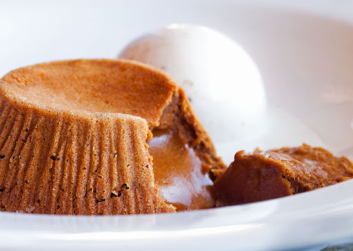 La Huella pastry chef Florencia Courreges gives the gooey molten cake a below-the-equator vibe by adding rich dulce de leche instead of chocolate. The timing is critical; invert and serve the cakes hot, just out of the oven.