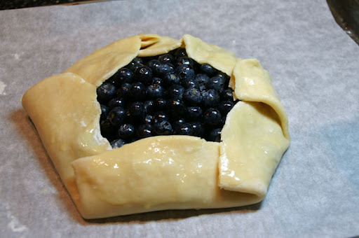 Cut the peaches and plums in wedges and place them in a bowl with the blueberries. Toss them with 1 tablespoon of the flour, 1 tablespoon of the sugar, the orange zest, and the orange juice. Place the mixed fruit on the dough circle, leaving a 1 1/2-inch border.