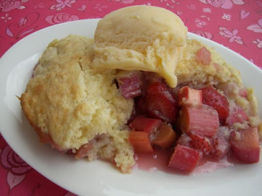 Wonderful! However, I took some of the past suggestions and made a few of my own. Used mostly raw sugar instead of granulated. I'd recommend using 4 cups rhubarb & 1.5 cups strawberries (frozen or fresh). I's used 1/4 c heavy cream with 5/8 c milk (skim worked great). I also tried to make it a little better and used 1 c all purpose flour with 1/2 c wheat flour. DELICIOUS! I'm going to cut back on the sugar even more next time.