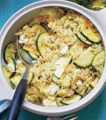 Add the orzo, Feta, and dill to the zucchini mixture and toss to combine.