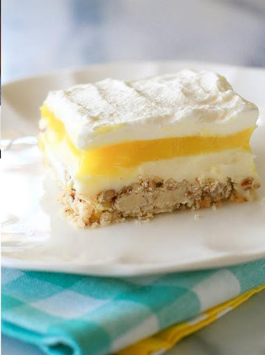 For the Pudding layer: In a separate bowl, mix the lemon pudding and milk together and beat for 3 to 5 minutes. Let the mixture set up slightly in the refrigerator if it's not thick yet. Once it has set up a little spread it over the cream cheese layer