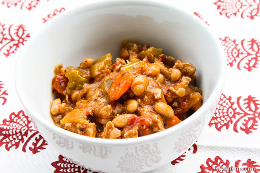 In a large skillet, sauté onion until soft (about 5 minutes). Add the ground chicken, celery and carrots and cook until meat begins to brown (about 4-5 minutes).