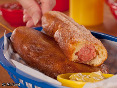 Place coated hot dogs in skillet in batches and cook 1 to 2 minutes per side, or until coating is golden and hot dogs are heated through. Serve immediately.