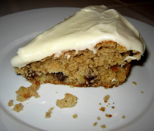 This cake really was a “piece of cake” to make. It took no time at all and the results were delicious. The apples and raisins were the stars! I loved the plumpness and juiciness they added to the cake. The frosting was a great touch too!