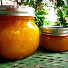 Have ready a large water bath canning kettle (readily available at discount stores or hardware stores), pint sized Mason canning jars with brand new lids. You will also want a canning jar lifter and a candy thermometer.