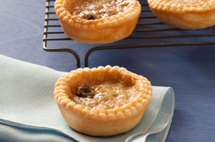 *HEAT* oven to 375ºF. Roll out pastry on lightly floured surface to 1/4-inch thickness. Cut into 12 rounds with 4-inch cutter. Spray 12 muffin pan cups with cooking spray; line with pastry rounds. Place raisins in pastry cups.