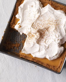 3. Pour filling into cooled crust and refrigerate until chilled and completely set, about 3 hours (or wrap tightly with plastic and refrigerate, up to 2 days). To serve, whip cream with confectioners' sugar until soft peaks form. Top pie with whipped cream and sprinkle with nutmeg.