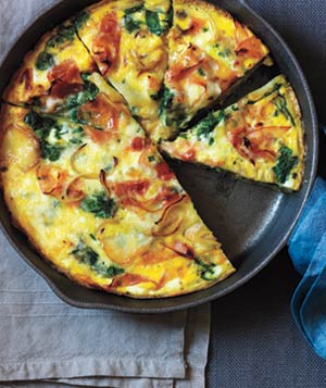 Add the egg mixture to the skillet, stir once, and transfer the skillet to oven. Cook until the eggs are set, 12 to 14 minutes. Brown top quickly under broiler, if desired.