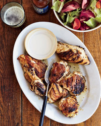 Easy Way; Home cooks can grill pieces of chicken until crispy and nicely charred, then serve them alongside Lilly's terrific white sauce.