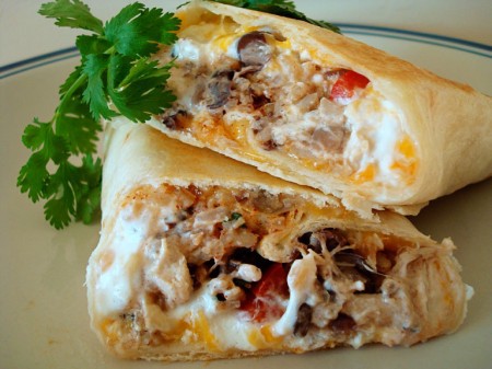 We made this last night and it was terrific. We used homemade tortillas and they did just fine. We used mild cheddar and mozerella as the cheeses. I think next time I’ll add a little tomato and/or pico to the mixture. Anyway, thumbs up, majorly.