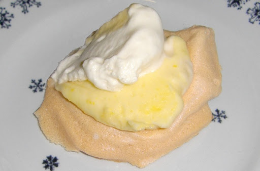 Mix 1/2 of the whipping cream and the chilled egg yolk mixture together. This completes the lemon filling which will keep well in the refrigerator for several days.
