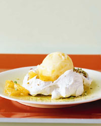 Pistachio Pavlovas with Oranges and Blood Orange Sorbet