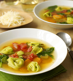 1. Bring chicken broth to a boil. Add tortellini, reduce heat and cook uncovered for approx 10 min. Add the vegetables and return to a boil. Reduce heat and cook