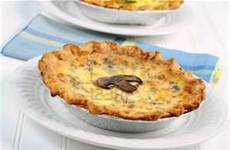 Whisk together eggs, milk, and flour. Spread the grated cheese over the bottom of the unbaked crust and top with the onion and mushroom mixture. Pour in the custard and sprinkle everything with paprika.