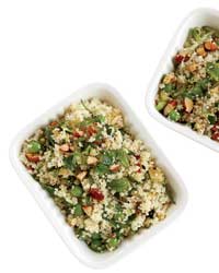 Stir in the zucchini, peas, almonds, scallions, parsley and mint. Season with salt, black pepper and crushed red pepper.