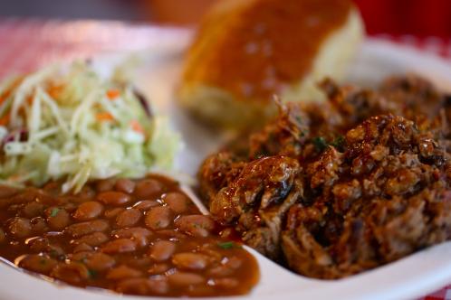 Photo of Homemade Baked Beans served with Famous Barbecue Pulled Chicken.