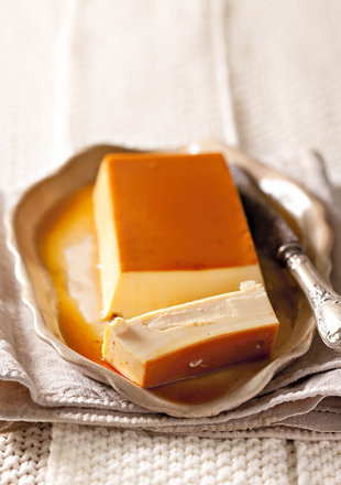 melkmengsel by terwyl jy roer. Gooi hele mengsel deur ’n sif in broodpan. Plaas broodpan in oondbak en vul halfpad met warmwater. Bedek met tinfoelie en bak vir 50 – 60 minute of tot gestol soos jellie. Haal uit oond en sit in yskas om heeltemal af te koel. Keer versigtig uit en sit voor.