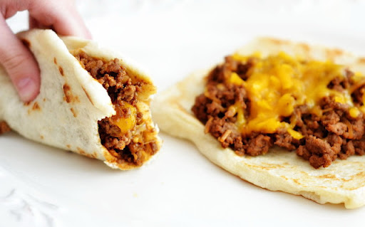 Take one flatbread and fill with a little of the cheeseburger mixture and shredded cheese. Serve while warm! Serves 4 (2 flatbread melts per person)