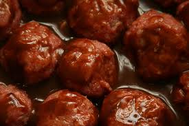 Mix and shape into walnut-sized balls. Spray jelly roll pan with Pam and place meatballs in a single layer in pan. (Makes 2 jelly roll pans).