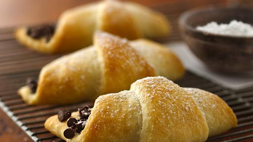 When I visited Morrocco, we had the most delicious chocolate croissants... so when I returned home i used crescent rolls and brushed the tops with egg yolk then baked! it was pretty darn close to the French Patisseries I had visited! The key is not to use too much chocolate!