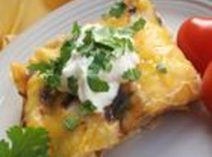Cover tortillas evenly with 1/3 chicken mixture, sprinke 1/3 shredded cheese over chicken. Repeat process until there are three layers ending with cheese layer. Cook fo 45 min at 350 degrees.