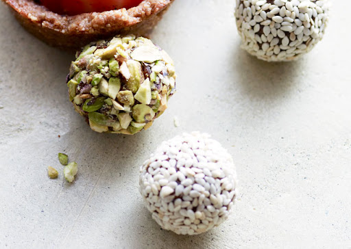 These can be prepared a number of different ways. Pick one flavoring, then roll them in the coatings of your choice.