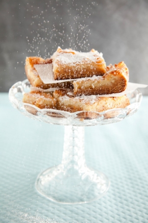 Preheat oven to 300 and spray a 9×13 dish with cooking spray. Mix cake mix, melted butter and one egg to a soft dough. Press into the bottom of the pan. Mix powdered sugar, softened cream cheese and remaining two eggs until smooth, about 1-2 mins. Pour on top of crust. Bake at 300 for 40-50 minutes until top is golden brown.