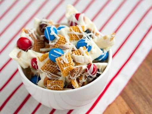 Make your own patriotic treats for the Fourth of July, Memorial Day, Veteran's Day, or any day celebrating everything red, white, and blue with this super simple Patriotic Chex Mix. Throw this together before heading to the beach or your neighborhood party, for a truly yummy snack that doesn't take very much time!