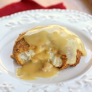 Make gravy by mixing one package of chicken gravy mix, one can of cream of chicken soup and 3/4 can of water in a small pot. Mix together and heat until warm. Serve chicken pillows with gravy poured over top.