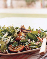 Salad of Mixed Greens with Grilled Peaches and Cabrales Cheese