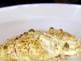 Combine the creme fraiche, 2 mustards, shallots, capers, 1 teaspoon salt, and 1/2 teaspoon pepper in a small bowl. Spoon the sauce evenly over the fish fillets, making sure the fish is completely covered. Bake for 10 to 15 minutes, depending on the thickness of the fish, until it's barely done. (The fish will flake easily at the thickest part when it's done.) Be sure not to overcook it! Serve hot or at room temperature with the sauce from the pan spooned over the top.