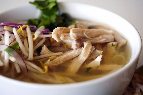 Remove chicken and place on plate to cool. Slice off chicken and return carcass to pot.