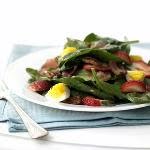 In a small skillet over medium heat, cook bacon until browned and crispy. Remove bacon to paper towels. Add shallot to skillet and cook until transparent, about 2 minutes. Remove from heat and stir in brown sugar, vinegar, mustard, and Worcestershire. In a large bowl, toss spinach with the warm dressing. Immediately add strawberries, pecans, and chopped eggs; toss lightly and serve.