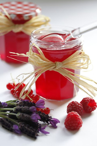 1. Wash fruit and remove all stalks and leaves, place in a deep pot and bring to the boil, together with the lavender stirring regularly. Simmer for 10 minutes or until most of the juice has been extracted from the fruit.