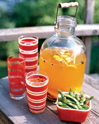 In a large pitcher, lightly crush the mint with a wooden spoon. Add the chilled mixture and stir. Strain the cooler before serving. Garnish with the remaining lemon slices and serve.