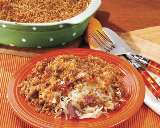 The wonderful flavors of a classic Reuben sandwich in a handy, portable casserole. This recipe from Rose is even better when made with crumbs from homemade Rye Bread