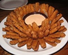 3.Cut about 3/4″ off top of onion and peel. Cut into onion 12 to 16 vertical wedges, but do not cut through bottom root end. Remove about 1″ of petals from center of onion.