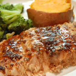 "A glaze featuring balsamic vinegar, garlic, honey, white wine and Dijon mustard makes baked salmon fillets extraordinary."
