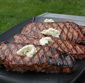 New York Strips with Gorgonzola Butter
