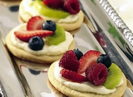 Spread each cooled cookie with 1 tablespoon cream cheese mixture. Arrange fruit on top of each. Serve immediately, or cover and refrigerate up to 2 hours.