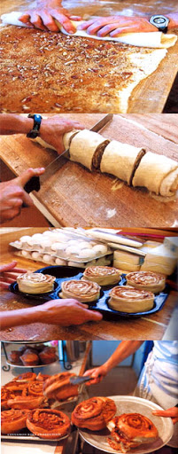 Roll dough into a rectangle about 20 by 30 inches. Brush with a thin layer of melted butter. Sprinkle with brown sugar, cinnamon, and chopped pecans.