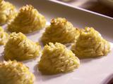 Make an egg wash by mixing the whole egg with the remaining 1/2 cup cream. Lightly brush the piped potatoes with the egg wash. (This is a little easier if you chill the piped potatoes for half an hour or so.)