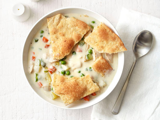 Preheat the oven to 425 degrees F. Unroll the pie dough onto a baking sheet and sprinkle with pepper and a pinch of poultry seasoning; cut into quarters. Bake until puffed and golden, about 10 minutes.